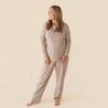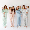 Each set includes a high-waisted, full-length pant with pockets (yes, pockets!). Plus, every pajama set comes thoughtfully packaged in a matching organic cotton bag — perfect for gifting, travel, or keeping your set neatly stored.